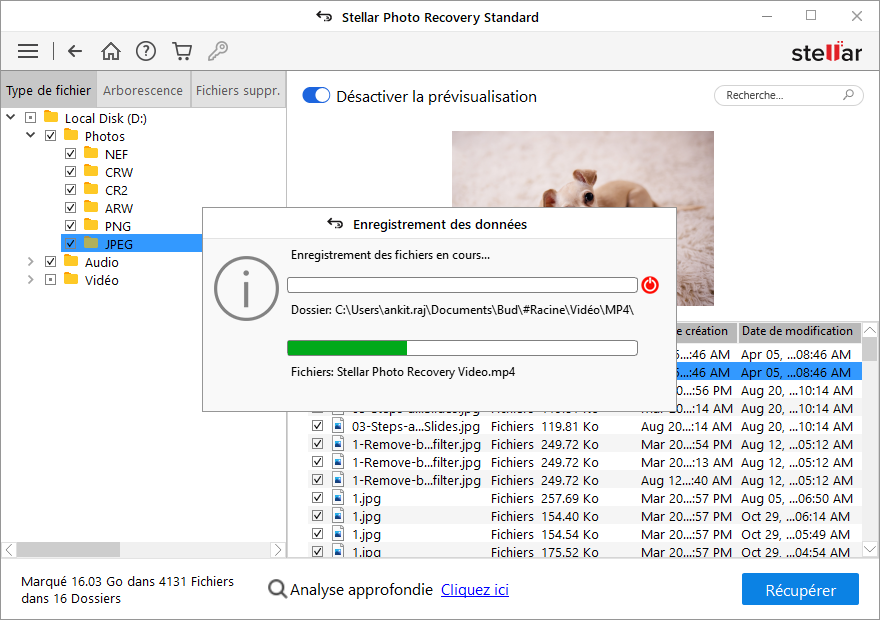 L'outil Stellar Photo Recovery récupère les photos perdues sur tous les types de supports de stockage. Il prend en charge la récupération de CR2 /CR3/CRW (Canon), ERF (EPSON ), RAF (Fujifilm), K25 /KDC /DCR (Kodak), MRW (Konica Minolta), MOS/MEF (Mamiya), NEF/ NRW ( Nikon), ORF (Olympus), RAW (Panasonic), PEF (Pentax), SR2/ARW/ SRF (Sony), X3F (Sigma), DNG, DJVU, PGM, Adobe EPS (Mac), Adobe EPS (Windows), TGA, JPEG, TIFF (Motorola et Intel), BMP, GIF, PNG, PSD, INDD, PSP, PCT, JP2, et autres formats de fichiers.